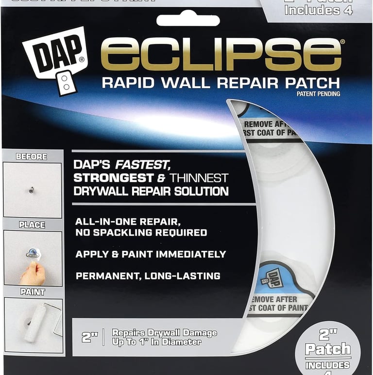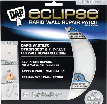 The DAP Eclipse Clear Wall Patch makes repairing small wall holes fast, clean, and hassle-free. Its self-adhesive design sticks firmly, blends smoothly with paint, and dries invisibly—perfect for quick fixes around the home without sanding, spackle, or mess. A reliable go-to for renters, DIYers, and homeowners.
