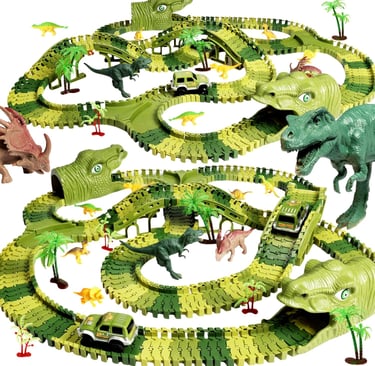 This action-packed 266-piece dinosaur track set turns any room into a thrilling prehistoric world. Kids can build flexible race tracks, create dinosaur landscapes, and zoom two motorized dino cars through endless twists and turns. A perfect gift to spark imagination, STEM skills, and nonstop fun for young adventurers.
