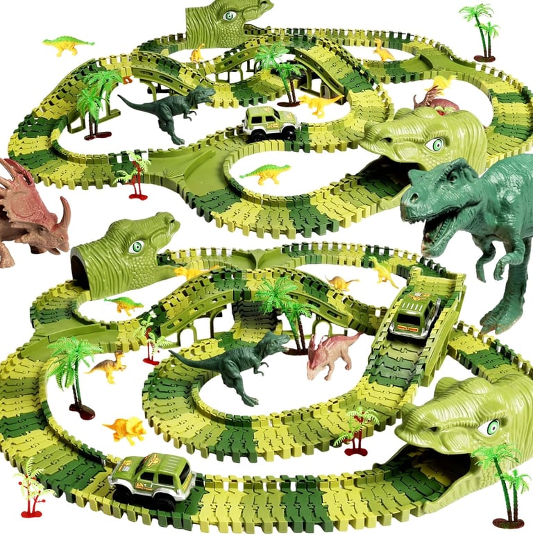 Dinosaur World Race Track Set – 266 PCS Adventure Kit