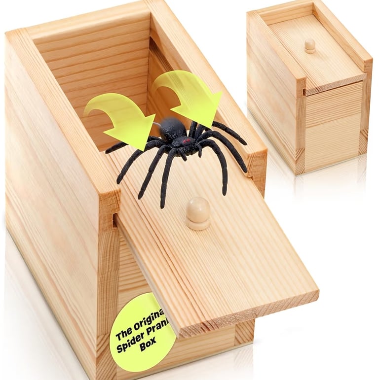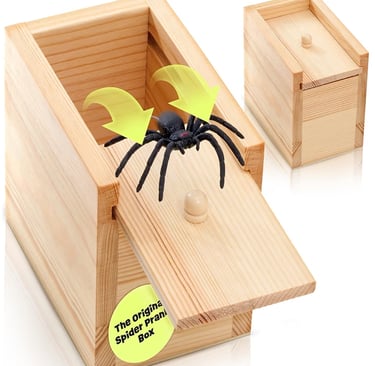 The FunFamz Original Spider Prank Box delivers instant laughs and screams! Handcrafted from wood, this clever box hides a spring-loaded spider that jumps out when opened — perfect for funny pranks on friends, coworkers, or family. It even includes a hidden gift card holder, making it the ultimate surprise-and-gift combo for both adults and kids. Get ready for pure shock and laughter!
