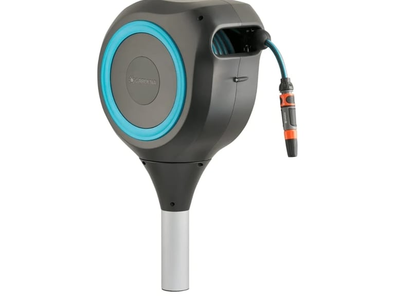 The GARDENA 66-foot retractable hose reel offers effortless garden watering with its 360° metal spike base—ideal for full-range coverage. The auto-retract mechanism keeps your hose neat and tangle-free, while the durable metal housing withstands outdoor use. At half-inch diameter, it delivers strong water flow, and the swivel feature ensures flexible positioning. It’s easy to install and perfect for maintaining flower beds, lawns, or vegetable patches. A tidy, efficient solution for hassle-free outdoor watering.