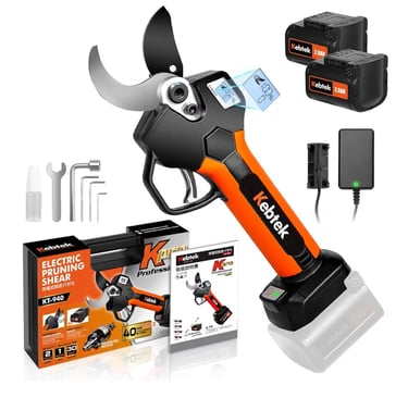 The Kebtek KT940 Cordless Pruning Shears redefine power and precision in garden tools. Equipped with a robust 18V brushless motor, it easily slices through branches up to 40mm thick. The LCD display keeps you informed about battery life and performance, while the 2 rechargeable 2Ah batteries ensure hours of uninterrupted trimming. Perfect for gardeners, orchard workers, and homeowners who value efficiency, comfort, and durability.