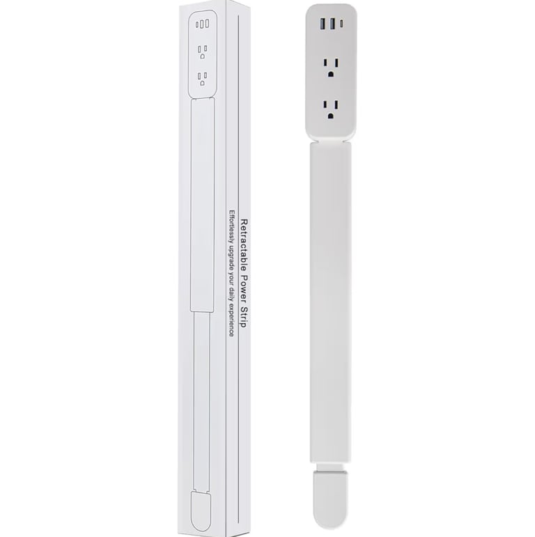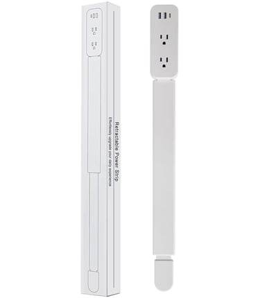 The Outlet Extender Stick is a sleek and practical power solution designed to reach tight spaces. With an extendable arm (22"-34") and 180° rotation, it makes plugging into hard-to-reach outlets effortless. Equipped with USB-A, USB-C, and dual AC outlets, it powers all your devices from behind nightstands, sofas, or desks. Perfect for modern homes that value organization and convenience.