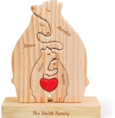 Celebrate love and togetherness with this custom wooden hugging bear puzzle, beautifully engraved with 2–7 family member names. A heartwarming personalized gift for mom, dad, or the whole family, it symbolizes unity and affection. Perfect for Christmas, anniversaries, or home decor, this handmade wooden keepsake adds warmth and charm to any room.