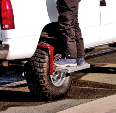 The Powerbuilt Tire Step delivers strong, slip-resistant support for trucks, SUVs, and semis. Its rugged “cheese grater” steel surface ensures secure footing, while the adjustable frame fits tyres up to 13 inches wide. With a 300 lb capacity and a fold-flat design, it’s perfect for loading gear, washing roofs, or performing quick repairs with confidence.