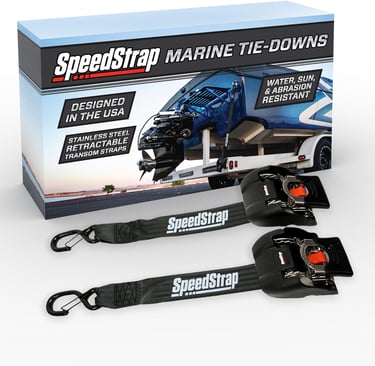 These retractable marine transom tie-down straps deliver reliable, heavy-duty security for boats during transport. Built with stainless steel components and rated at 1,800 lbs, they ensure firm stability with smooth retractability for fast setup and removal. The snap S-hooks provide a tight, universal fit across most marine vessels, making them perfect for safer, easier, and worry-free towing.